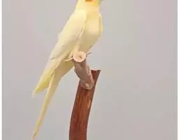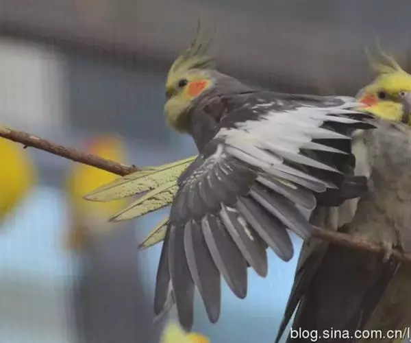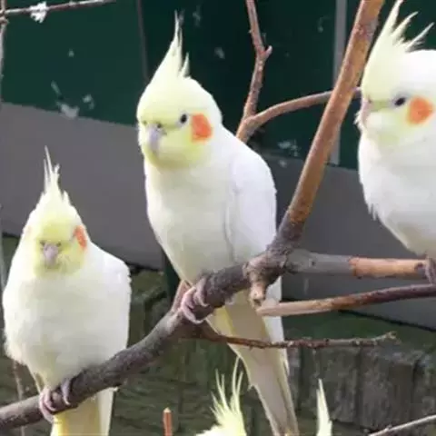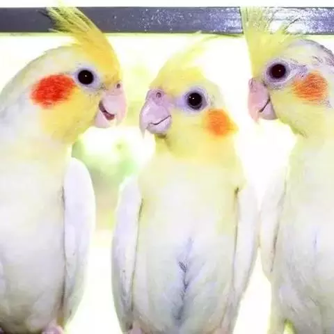黄化鸡尾鹦鹉:始于1958年美国的弗罗里达州,黄化种是由于黑色素的缺乏,导致它们身体羽为白色,头具淡黄色羽冠,嘴为象牙白色。头部、脸颊、下颌至上喉部均为淡黄色,脸颊具橘黄色圆形块斑。跗跖、脚为肉粉色。