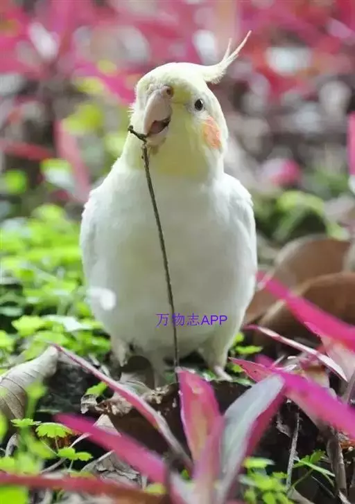 白子鸡尾鹦鹉:白化(或称白子)鸡尾鹦鹉,并非白化病的结果,是结合白脸和黄化两种基因的新品种,全白的毛、红色的眼珠及粉红色的脚,因其毛色全白而相当稀有,因此非常珍贵。全身羽色皆为纯白色,脚为粉红色。由于黑色素完全消除掉的缘故,其没有黄化种的橘色面颊并且没有任何黄斑。