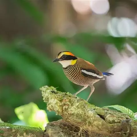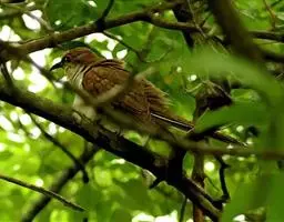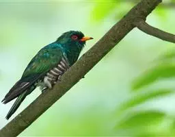 四声杜鹃(学名:Cuculus micropterus):是中型鸟类,体长31-34厘米。头顶和后颈暗灰色;头侧浅灰,眼先、颏、喉和上胸等色更浅 ;上体余部和两翅表面深褐色 ;尾与背同色,但近端处具一道宽黑斑。下体自下胸以后均白,杂以黑色横斑;翅形尖长;尾具宽阔的近端黑斑,翅缘白而无斑;下体横斑较粗,达3-4毫米宽,且较疏,斑距超过5 毫米。