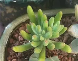 玉缀,别名翡翠景天景天科景天属常绿或半常绿多肉植物。植物匍匐下垂,翠绿色。叶小,多汁,纺锤形,、密…