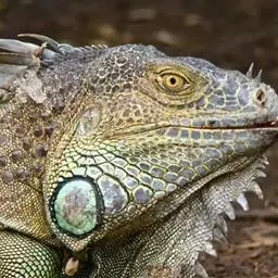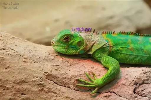 绿鬣蜥(学名:Iguana iguana)是美洲鬣蜥科、美洲鬣蜥属爬行动物。绿鬣蜥是鬣蜥种类中体型最大的,由于被广泛饲养,所以成为最有人气的鬣蜥种类。 刚孵化的绿鬣蜥的长度从17-25厘米不等。大多数成年绿鬣蜥体重在4-6千克之间,但在南美洲,如果饮食适当,体重可以达到8千克。绿鬣蜥的头到尾长度可达2米左右。颜色是可变的。随着年龄的增长,成年绿鬣蜥的颜色会变得更加均匀,而幼年绿鬣蜥的颜色可能会出现斑点或在绿色和棕色之间出现条纹。绿鬣蜥的其他显着特征包括喉咙下的颈下垂皮,由从中颈到尾巴基部延伸的真皮刺组成的背顶,以及长长的逐渐变细的尾巴。成年雄性比雌性的颈下垂皮更发达。侧边的眼睛主要由不动的眼睑和自由活动的下眼睑保护。在眼睛后面的头骨的背中线是顶眼。头部的鳞片比身体其他部位的鳞片更大,更不规则。在鼓膜下方有一个巨大的圆形鳞片,称为鼓室下板。