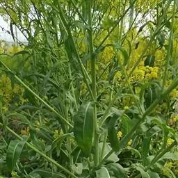 芝麻菜(学名:Eruca sativa Mill.)是十字花科,芝麻菜属一年生草本植物,高可达90厘米;茎直立,叶片羽状分裂或不裂,顶裂片近圆形或短卵形,有细齿,侧裂片卵形或三角状卵形,上部叶无柄,总状花序有多数疏生花;花梗长柔毛;萼片长圆形,棕紫色,花瓣黄变白,有紫纹,短倒卵形,果瓣无毛,种子棕色,有棱角。5-6月开花,7-8月结果。