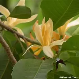 黄缅桂是木兰科、含笑属植物。常绿乔木,高达10余米;芽、嫩枝、嫩叶和叶柄均被淡黄色的平伏柔毛。…