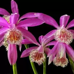 矮石斛:茎直立或斜立,粗短,纺锤形或短棒状,具许多波状纵条棱和2-5节。叶2-4枚,近顶生,革质,…