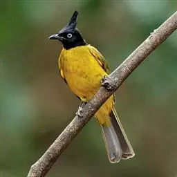 黑冠黄鹎:体长18-21厘米,是一种中等体型偏黄色鹎。整个头、颈、颏、喉黑色,头顶有显著直立的羽冠,…