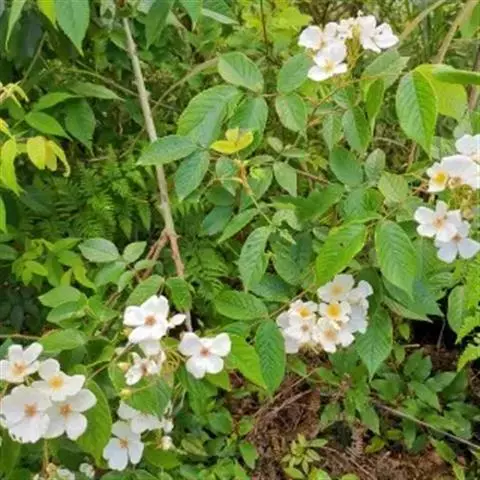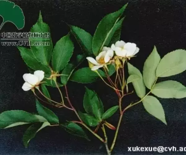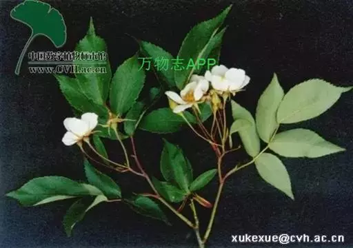 白蔷薇:直立灌木,高约2米;小枝有不等钩状皮刺,有时混有刺毛。小叶通常5,稀7,宽椭圆形或卵形,…