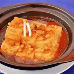 豆腐煲是一道美味可口的名肴,属于粤菜系。主料:北豆腐、蟹味菇、瑶柱、鲜茶树菇