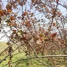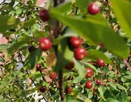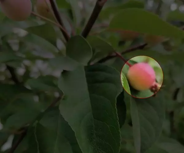 果实卵形,直径2-2.5厘米,红色,先端渐尖,稍具隆起,萼洼微突,萼片宿存肥厚,果梗细长。花期4-5月,果期8-9月。