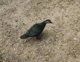 虹膜雄鸟红色,雌鸟红褐色,嘴深红色。嘴峰和嘴甲黑色,跗跖红色。