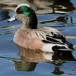 雄鸟头部黑色,具绿色金属光泽,枕部具黑色羽冠;上颈白色,形成一宽的白色颈环。下颈和胸锈红色,背黑色,下背暗褐色,腰和尾上覆羽灰褐色,具细密的黑白相间虫蠹状细纹。尾羽灰褐色,初级飞羽和覆羽暗褐色,外侧边缘褐色较深,次级飞羽白色,外侧具黑色羽缘;三级飞羽黑褐色,大覆羽、中覆羽白色,小覆羽褐灰色,在翅上形成白色翼镜和大型白色翅斑,外侧肩羽白色,内侧肩羽黑褐色;下颈至上胸锈红色,杂以黑褐色斑纹,下胸至尾下覆羽白色,两胁具黑白相间的波状细纹。