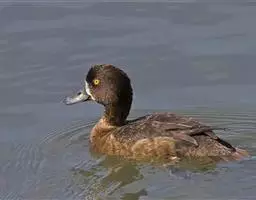 雌鸟额、头顶、枕和后颈棕褐色.头侧和颈侧淡棕色,枕部羽冠也为棕褐色;眼先白色。背、肩、一直到尾灰褐色,具灰色尖端。颏白色。喉和前颈淡棕白色,前胸污白色,两胁灰褐色,其余下体白色。