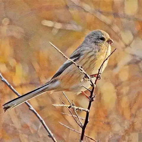 长尾朱雀:体长18厘米,体重16-26克。雄鸟额、颏和眼后为暗红色,…