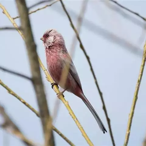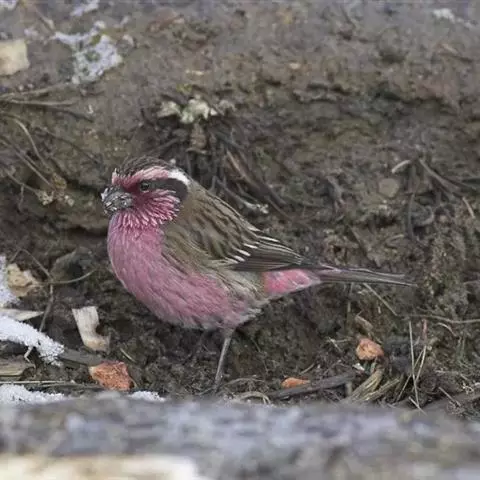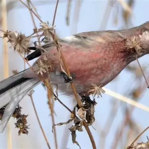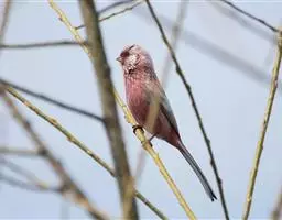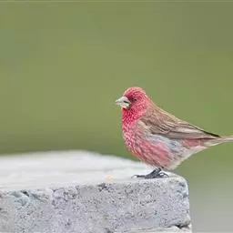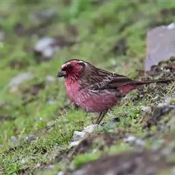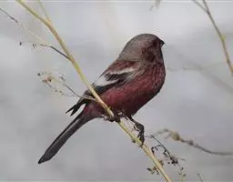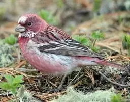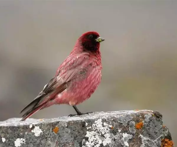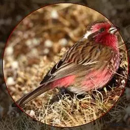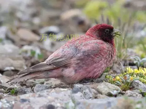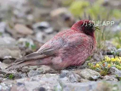 藏朱雀:全长约17-18厘米。雄鸟头部深红色具光辉,喉部暗红色具白色点斑;背部灰白色,各羽具玫瑰红…