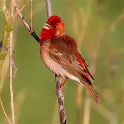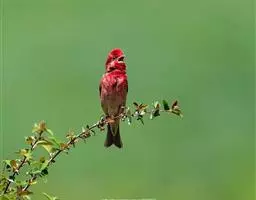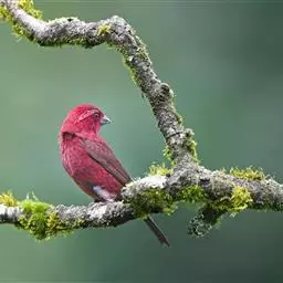 酒红朱雀小型鸟类,体长13~15厘米。雄鸟通体深红色,头部深朱红或棕红色,下背和腰玫瑰红色,…