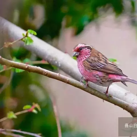 红眉朱雀:体长15厘米,是一种中等体型的朱雀。上体褐色斑驳,眉纹、脸颊、胸及腰淡紫粉,臀近白。…