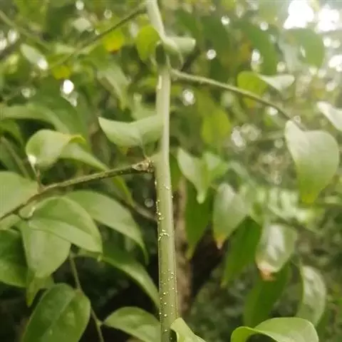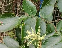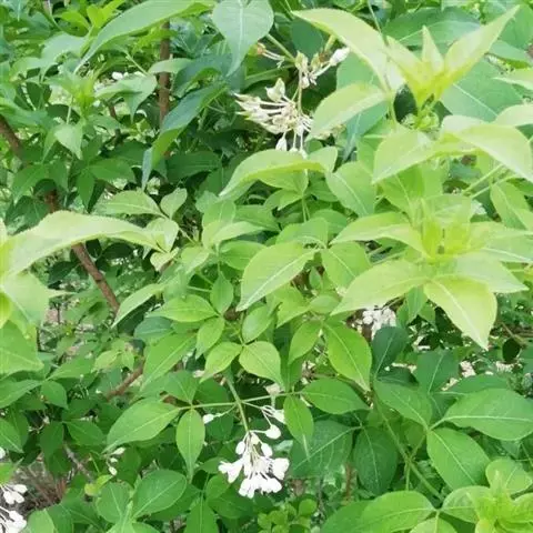 乔木,高可达15 米。羽状三出复叶对生,小叶片椭圆形或倒卵状椭圆形,长6~10 厘米,宽3~5 厘米,先端短渐尖,基部楔形或宽楔形,稀近圆形,边缘具细锯齿。圆锥花序叶腋生,花白色。蒴果梨形或椭圆形膨大,先端3 浅裂。