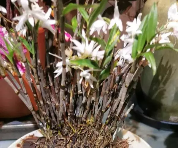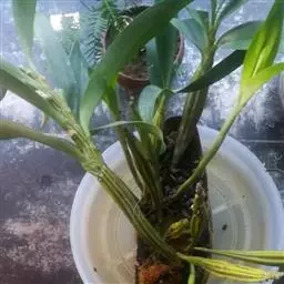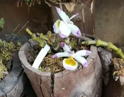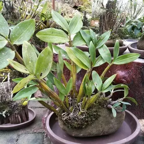 通常选用四壁多孔的塑料或陶瓷花盆,用碳根、泥炭藓、树皮块、木炭块等作盆栽材料。根据兰苗的大小,选择不同规格的花盆,但不宜用大盆栽小苗口上述栽好材料在使用前必需在清水中浸泡1天以上备用。盆底要多垫大瓦片或碎砖块,深度至盆底约1/3处,然后将兰苗放于盆中央,并在一旁插一细竹竿以固定兰苗,再填入其他栽培材料,注意根与根之间用材料隔开。