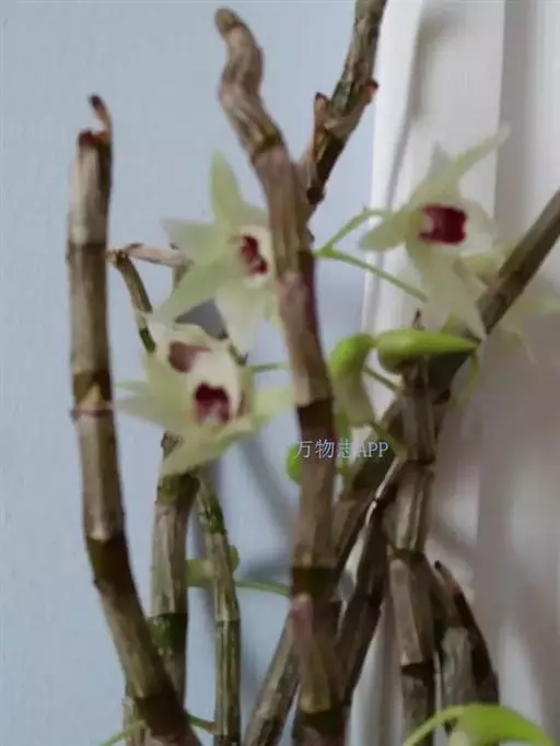 喉红石斛:附生。茎丛生,直立,粗短,近棒状纺锤体。叶2-4枚,生于茎顶。总状花序顶生,花序轴长5-…