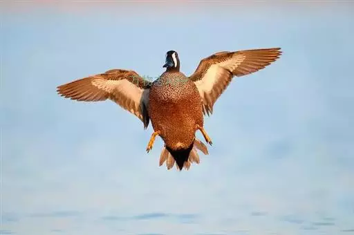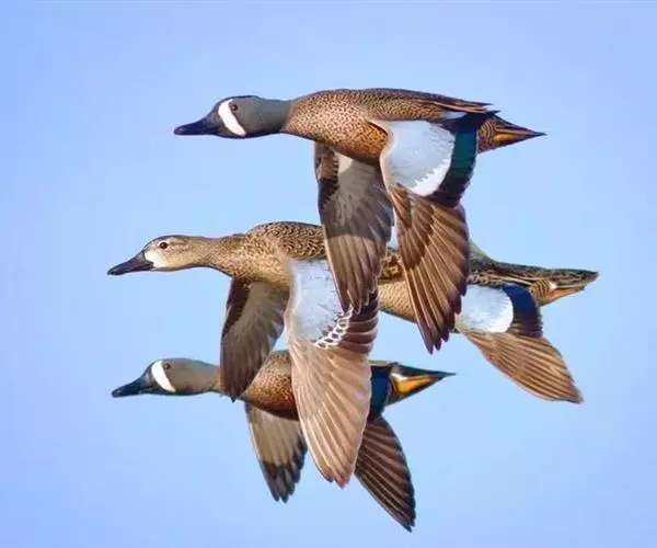 蓝翅鸭(图4) 蓝翅鸭是高度迁移的鸟类,冬天迁往南美洲,一般是秋天向南迁徙,在8月下旬开始,直到10月中旬继续进行。在迁移过程中,种子构成主要食物。