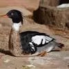 红胸秋沙鸭属中等食鱼鸭类,体长53厘米。嘴细长而带钩,捕食鱼类。丝质冠羽长而尖。雄鸟黑白色,两侧多…