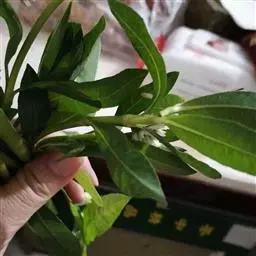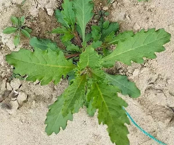 土荆芥(学名:ysphania ambrosioides (L.) Mosyakin et Clemants)是一年生或多年生草本,高50-80厘米,有强烈香味。茎直立,多分枝,有色条及钝条棱;枝通常细瘦。叶片矩圆状披针形至披针形,先端急尖或渐尖,边缘具稀疏不整齐的大锯齿。花两性及雌性,通常3-5个团集,生于上部叶腋。胞果扁球形,完全包于花被内。种子横生或斜生,黑色或暗红色,平滑,有光泽。花期和果期的时间都很长。