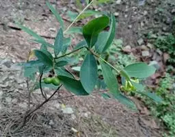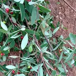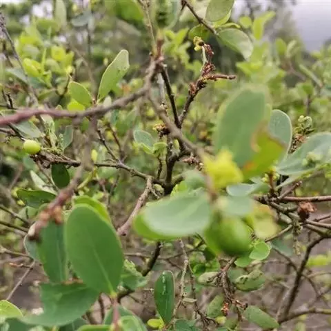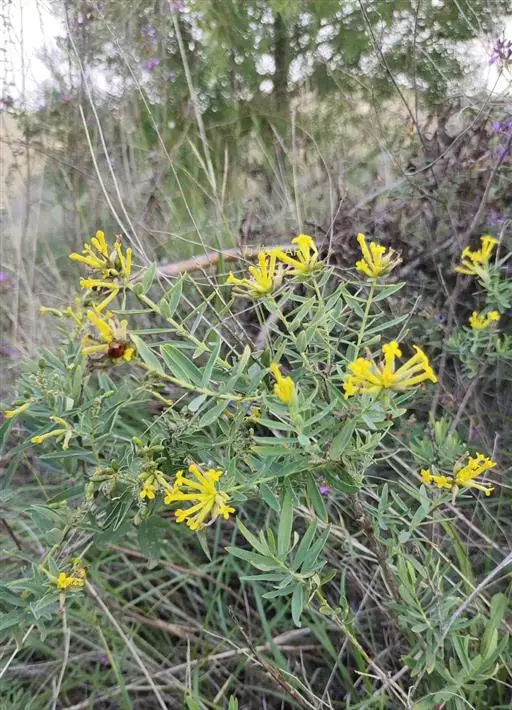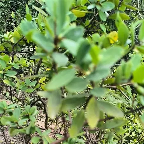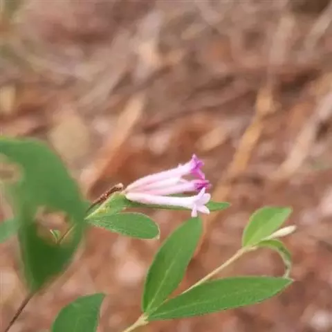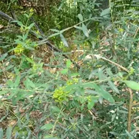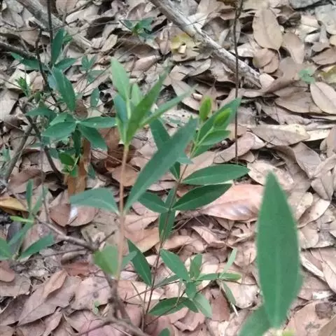 灌木,高约1米,分枝多而纤细,无毛;幼枝近四棱形,绿色,后变为褐色。叶对生,无毛,近革质,披针形,长2.5-5.5厘米,宽0.2-1厘米,先端尖,基部楔形,上面绿色,干后稍皱缩,下面灰绿色,光滑,侧脉每边7-8条,不明显;叶柄极短,近于无。