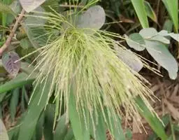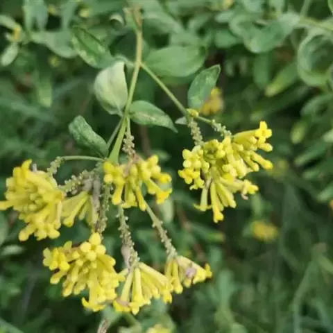 花黄色,花序穗状或由穗状花序组成的圆锥花序,顶生或腋生,密被灰色短柔毛;花梗极短,具关节,花后残留;花萼长约8-10毫米,外面被灰色绢状短柔毛,裂片4,2大2小,卵形至长圆形,端圆,约等于花萼长的1/3;雄蕊8,2列,着生于花萼筒的中部以上;花药长圆形,长约1毫米,花丝短,近于无;子房棒状,具柄,顶部被短柔毛,花柱短,柱头圆珠形,顶基稍压扁,具乳突;花盘鳞片1枚,线状披针形,端钝,约长0.8毫米。果卵形,干燥。花期6-8月,果期9月。