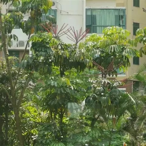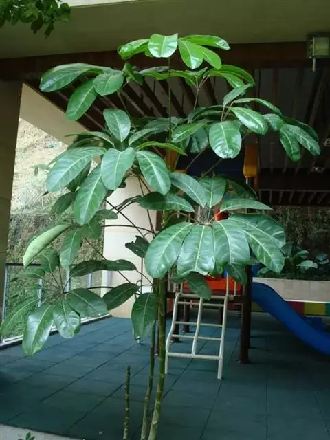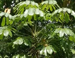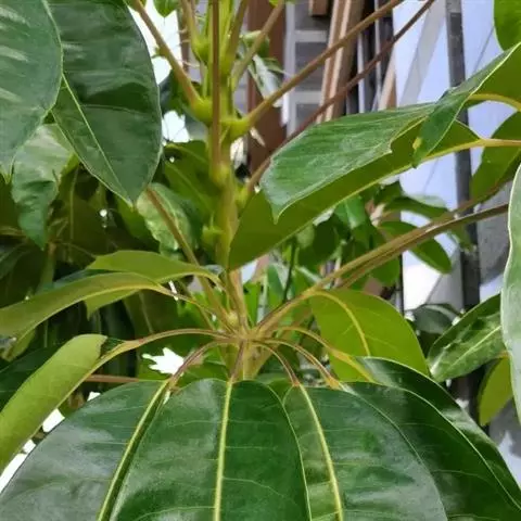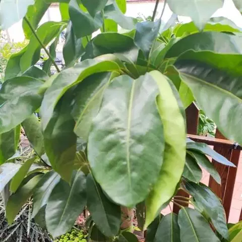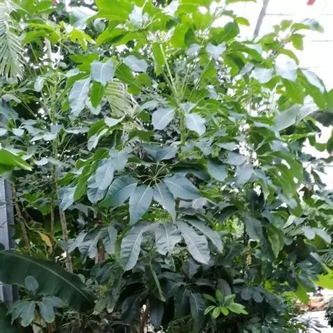 昆士兰伞木,吕松鹅掌柴 ,称昆石兰遮树,澳洲鸭脚木、方式叶鹅掌柴、伞树、大叶伞。叶片阔大,柔软下…