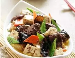 豆腐:豆腐的蛋白质含量丰富,而且豆腐蛋白属完全蛋白,不仅含有人体必需的八种氨基酸,而且比例也接近人体需要,营养价值较高;有降低血脂,保护血管细胞,预防心血管疾病的作用。此外,豆腐对病后调养、减肥、细腻肌肤亦很有好处。
