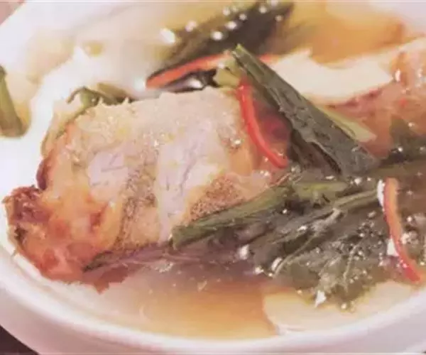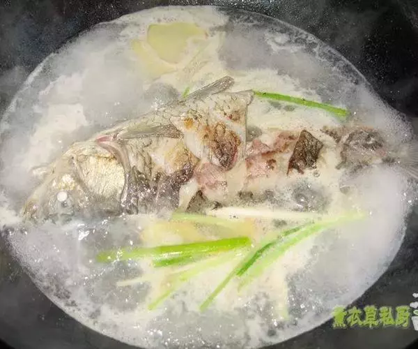 鲫鱼入热猪油锅中煎至两面都呈金黄色,烹入料酒,将鸡汤750毫升、冻豆腐丁一起放入,再加盐、用中火煮至汤呈乳白色时放入熟鸡片、火腿片、菜心、笋片略烧,加味精,用湿淀粉勾芡,淋几滴猪油即成。
