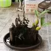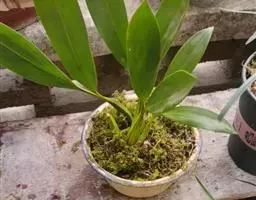方法一 准备好兰盆及植料后,将兰株倒拿(根在上,叶在下)放于水龙头下以慢水冲洗,但水压切忌过强,以免伤兰根及叶子。用拇指和食指抓住兰头,小指抵住盆缘,用竹筷将根固定,当放入盆内时,尽量不要让根接触到盆壁。将豆粒大的混合石砾倒入盆底至三分之一处。然后倒入中粒植料至五分之四处,填实和尽量不要留下空间。将竹筷拔出,并摇实盆中植料。填实植料后,再用大粒植料埴入至距盆缘1.5厘米处。最后再倒入豆粒大植料,以将假鳞茎全部埋入土中为度,然后充分摇实。用压土工具轻压植料,并将表面弄平。种植完毕后,植料在盆中以中央稍高为好。