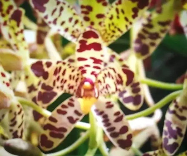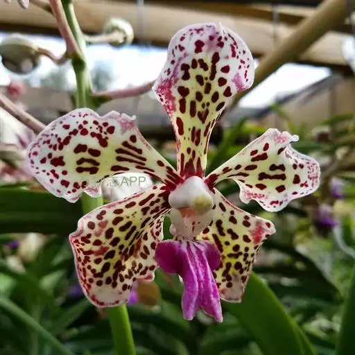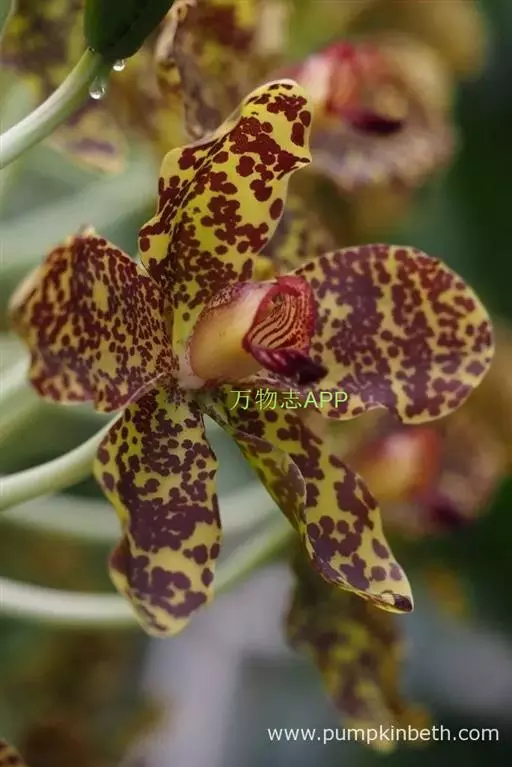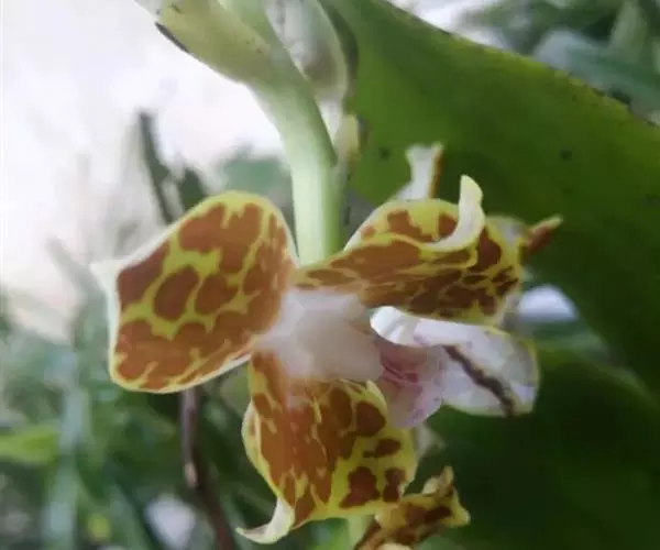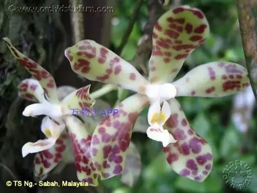 湿唇兰(学名:Hygrochilus parishii (Rchb. f.) Pfitz.):茎粗壮,长被宿存的叶鞘所包,上部具3-5枚叶。叶长圆形或倒卵状长圆形。花序1-6个,长达35厘米;疏生5-8朵花;花大,稍肉质,萼片和花瓣黄色带暗紫色斑点;萼片近相似,近宽倒卵形;花瓣宽卵形,长1.5-2.2厘米,宽1.4-1.7厘米,先端钝,具10条脉;唇瓣肉质,贴生于蕊柱基部,长约为萼片的一半,3裂。花期6-7月。