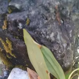 湿唇兰茎粗壮,长10-20厘米,粗8-15毫米,被宿存的叶鞘所包,上部具3-5枚叶。叶长圆形或倒卵状长圆形,长17-29厘米,宽3.5-5.5厘米,先端不等侧2圆裂,基部通常楔形收狭,具多数平行脉,在背面中肋稍隆起。