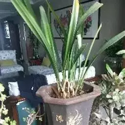 上盆(或翻盆)时间一般在春季3-4月或秋季10-11月。花盆以口小、盆深、底孔大的为佳。新从山上挖来的野生苗需理植于瓦盆(泥盆)中,这样兰花泥易干,通气性好.容易发根;2-3年后方可换人紫砂盆或瓷盆。兰花种植(在盆中)的方法与一般花卉不同,尤其是名种兰花,翻种移盆必须洗根。方法足将根浸入清水中,用旧牙刷或毛笔轻轻洗刷,切勿用力过大伤根;用剪刀将残叶、黄叶、断裂根、发黑腐烂根剪去,注意勿伤幼芽。然后将处理好的植株放在阴凉通风处晾干,待根部发白并显细小皱纹柔软时,再植入盆中。