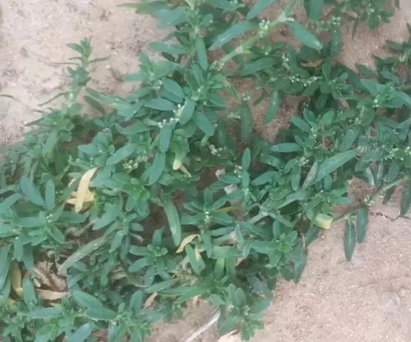 一年生草本。茎平卧,自基部分枝,长15-40厘米,具纵棱,沿棱具小突起,通常小枝的节间比叶片短。叶狭椭圆形或倒披针形,长0.5-1.5厘米,宽2-4毫米,顶端钝或急尖,基部狭楔形,两面无毛,侧脉不明显;叶柄极短或近无柄;托叶鞘膜质,白色,透明,长2.5-3毫米,顶端撕裂。