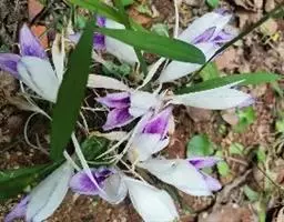 根茎卵球形,长4-5厘米,直径约2.5-3.5厘米,有或多或少呈横纹状的节,节上有残存的褐色、膜质叶鞘,鲜时内部白色或微带淡奶黄色。须根细长,生根茎周围,末端常膨大成近纺锤形块根;块根直径1.4-1.8厘米,内部乳白色。春季抽叶,叶基生,2-5片,直立;叶片椭圆状披针形,长14-39厘米,宽4.5-7(9.5)厘米,先端短渐尖至渐尖,尖头边缘向腹面微卷,基部渐狭,下延,两面被柔毛;叶舌高约1.5毫米,边缘有长柔毛;叶柄长2-11厘米,被短柔毛;叶鞘长约11-33厘米,被短柔毛。