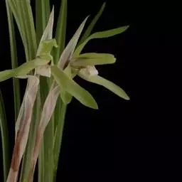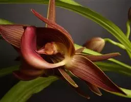 栗鳞贝母兰:根状茎粗壮,坚硬,粗7-8毫米,密被紫褐色的革质鞘。假鳞茎在根状茎上通常相距2-3厘米…