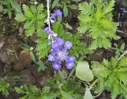 花近无梗,对生,少数聚集在短枝的顶端组成总状花序;苞片小,具柄。花萼卵状钟形,长约4毫米,外面密被白色星状绒毛及腺体,内面无毛,11脉,二唇形,上唇近圆形,全缘或具很短的3齿,下唇2齿,齿卵圆状三角形。花冠蓝紫色,长不及1厘米,外被疏短柔毛,内面无毛,冠筒稍外伸,冠檐二唇形,上唇直伸,2浅裂,裂片卵圆形,下唇宽大,3裂,中裂片最大,内凹,下倾,边缘为齿状,基部缢缩成柄,侧裂片长圆形。