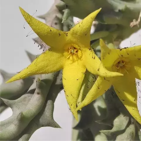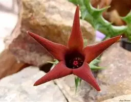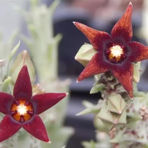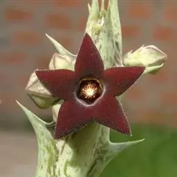 紫龙角是夹竹桃科水牛角属多年生常绿肉质化植物。茎四棱细柱状,半直立或匍匐生长;棱缘波状齿突起,…