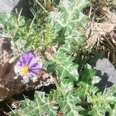 乳茄,茄科茄属直立草本植物,覆盖短的柔毛和扁平尖刺,小枝覆盖长柔毛和扁平刺,刺为蜡黄色,…