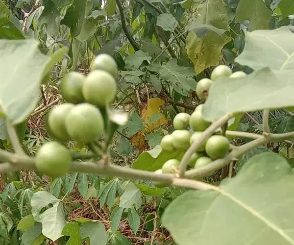 种子采集:水茄浆果成熟期(7-12月),采集粗壮、果形圆滑和着色好的黄色果实去皮净籽晒干。