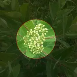 ‧花:花多数,小型,花苞黄绿色,开放时径 0.5~0.6 公分,呈腋生繖房状聚繖花序排列;花序长 1~2 公分,具毛茸;花柄细长长 0.8~1.5 公分,有毛茸;花萼小,5 深裂,毛缘;花数甚多而小,花冠轮形,带暗紫红色,5 深裂;裂片 5 枚,卵状披针形,长 0.4~0.5 公分,宽 0.2~0.3 公分,先端渐尖;富冠鳞片 5 枚,卵形,着生于雄蕊筒上,先端钝,高达花药之半;每一药室中仅有一枚花粉块;花粉块水平伸展。
