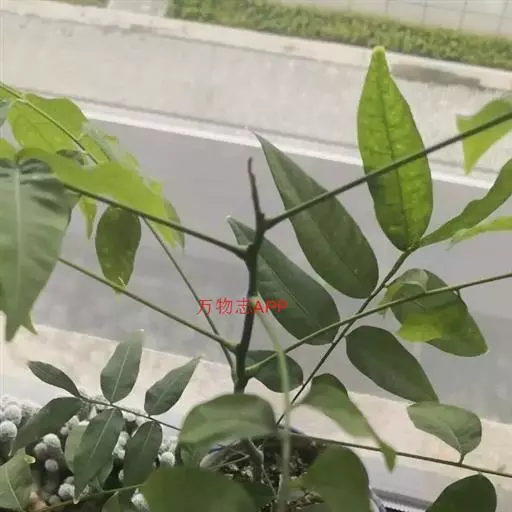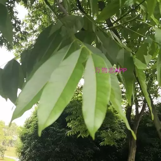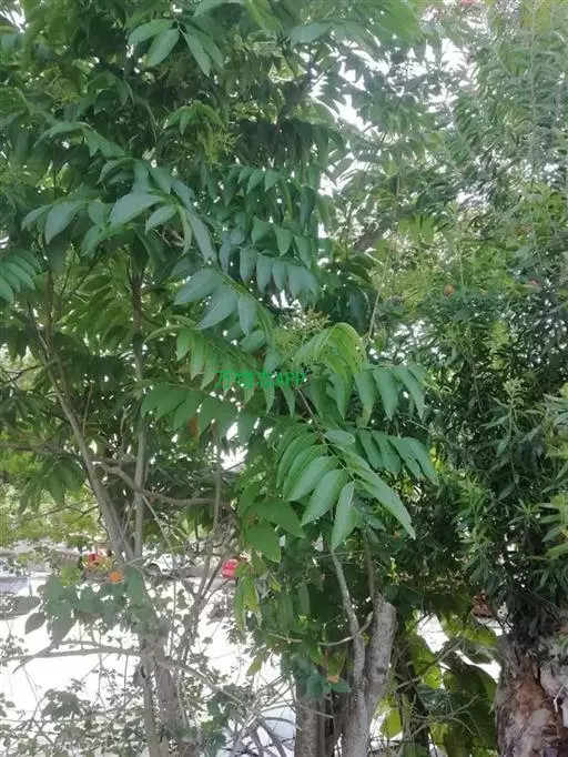 无患子 落叶大乔木,高可达20余米,树皮灰褐色或黑褐色;嫩枝绿色,无毛。单回羽状复叶,叶连柄长25-45厘米或更长,叶轴稍扁,上面两侧有直槽,无毛或被微柔毛;小叶5-8对,通常近对生,叶片薄纸质,长椭圆状披针形或稍呈镰形,长7-15厘米或更长,宽2-5厘米,顶端短尖或短渐尖,基部楔形,稍不对称,腹面有光泽,两面无毛或背面被微柔毛;侧脉纤细而密,约15-17对,近平行;小叶柄长约5毫米。
