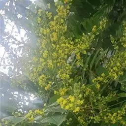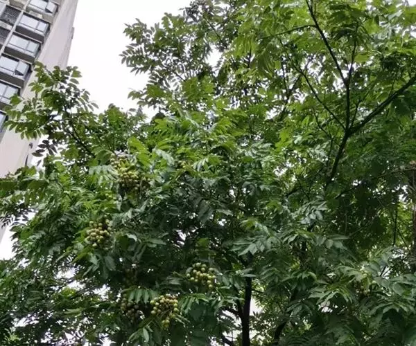 无患子落叶乔木,枝开展,叶互生;无托叶;有柄;圆锥花序,顶生及侧生;花杂性,花冠淡绿色,有短爪;花盘杯状;花丝有细毛,药背部着生,两性花雄蕊小,花丝有软毛。核果球形,熟时黄色或棕黄色。种子球形,黑色,花期6~7月。果期9~10月。