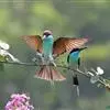 蓝喉蜂是蜂虎科蜂虎属鸟类。体长26-28厘米,嘴长而弯曲,有明显细长的中央尾羽。…