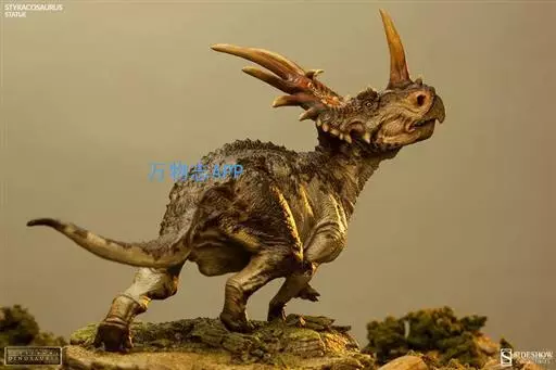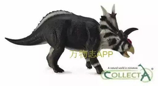 来历:牛角龙拉丁文的意为“巨型爬行动物”,人们曾经发现过一个2.67米的牛角龙头骨。