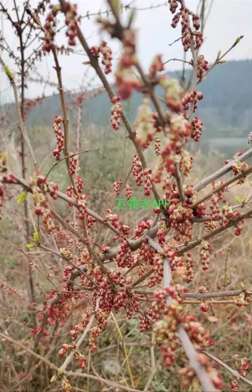 灌木,高1.5-2.5米,分枝水平开展,小枝四棱形或成四狭翅,幼枝疏被微柔毛,后变无毛,常带紫色,老枝紫褐色,具显著圆形突起的皮孔;芽鳞膜质,卵形或卵状三角形,长1-2毫米,紫红色,无毛。