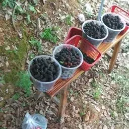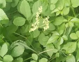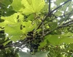 多歧聚伞花序,着生于侧蔓且与叶片对生,花小,呈白绿色,属两性花。花冠为十字形,花盘杯状,萼片4枚,基部合生,花瓣与萼片同数,雄蕊4枚,与花瓣对生,下位子房;果形圆形,果顶有针状突出,果径5~7毫米,未成熟果实为绿色,成熟果实呈紫黑色,果肉为浆果,单核。