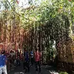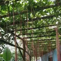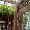 ⑵棚架式:绿化地段主要是室内至室外的连接棚架和一些花格、花架、绿亭及拱门等,具有遮阴、造景的功能,绿化效果侧重于覆盖于顶部的常绿叶片及悬挂而下随意修剪造型的气根。