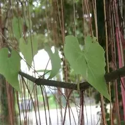 锦屏藤(学名:Cissus sicyoides L.)是葡萄科,白粉藤属多年生常绿草质藤蔓植物,具卷须,与叶对生;攀援茎,气生根线形,着生于茎节处,短截的气生根可分生多条侧根,下垂生长。初生气根紫红色,质地光滑脆嫩,老熟气根黄绿色,柔韧,长度可达4米;单叶片互生,叶色深绿,阔卵形,叶尖渐尖,叶基心形,叶缘微具钝齿,叶柄绿色,叶脉为羽状脉,叶面平展;多歧聚伞花序,花小,呈白绿色,两性花。花冠十字形,花盘杯状,萼片基部合生,雄蕊与花瓣对生,果形圆形,果顶有针状突出,果肉为浆果,单核。